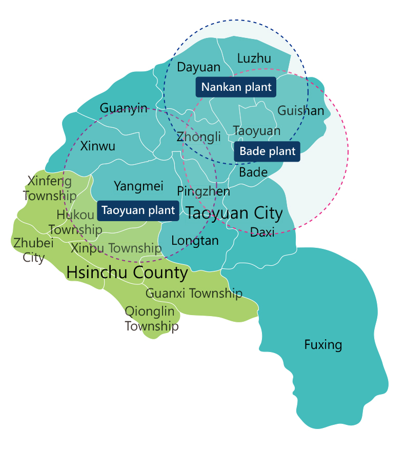 Along with the two other subsidiaries there is a total of 122 mixer trucks in the Taoyuan area plants.