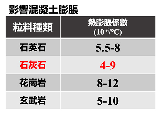 粒料種類與熱膨脹係數、熱傳導係數之差異