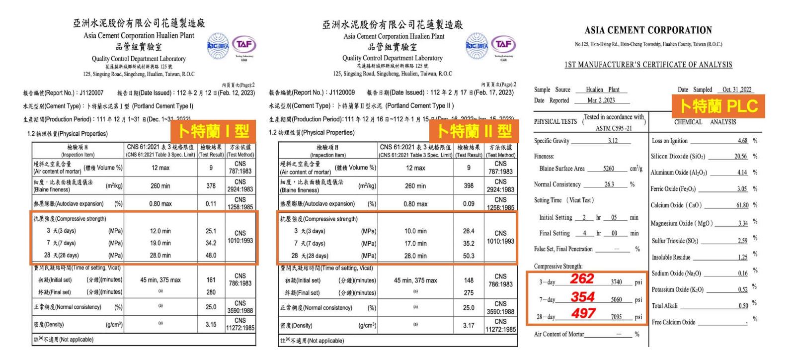卜特蘭石灰石水泥與傳統I/II型水泥之比較 - 物理性質